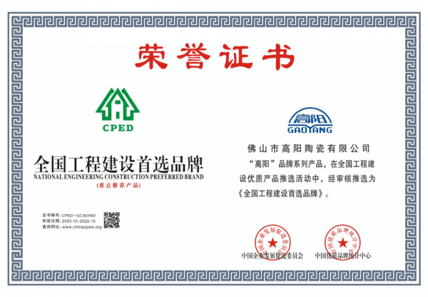 憑借優(yōu)越的產(chǎn)品質(zhì)量和創(chuàng)新設(shè)計(jì),高陽陶瓷榮獲了“綠色建材產(chǎn)品”“中國建筑衛(wèi)生陶瓷十大城鄉(xiāng)品牌”“一線陶瓷品牌”等多個(gè)行業(yè)獎(jiǎng)項(xiàng)。